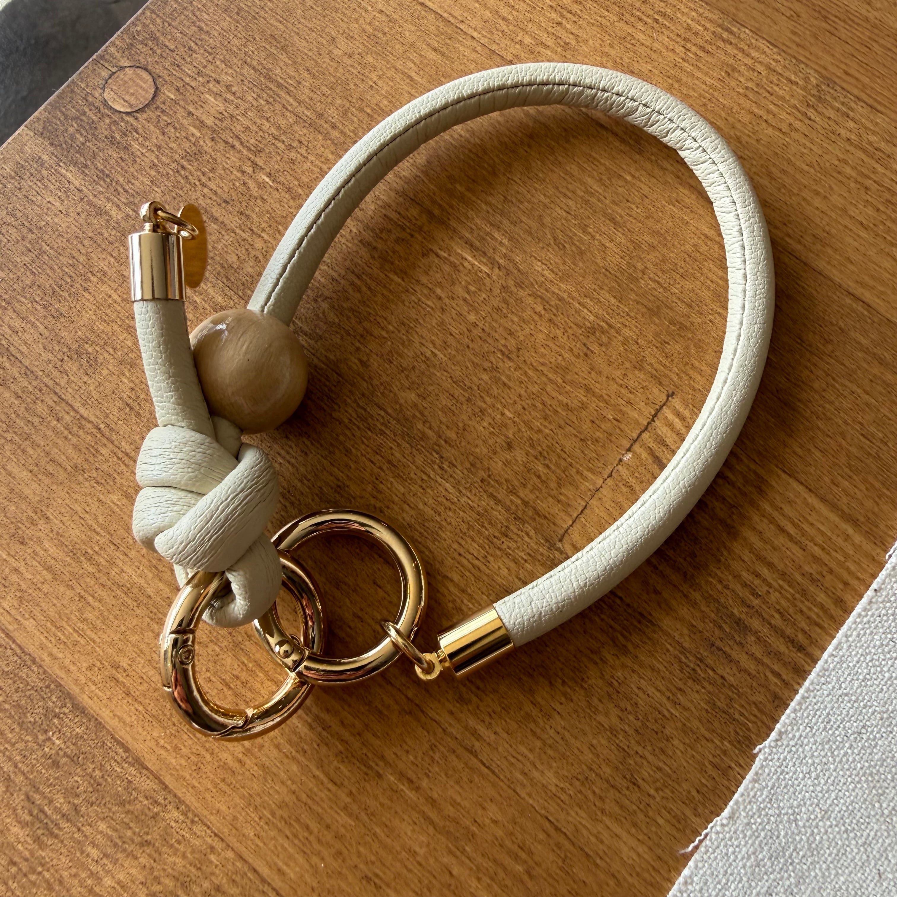 やわらかなアイボリーの革紐に、