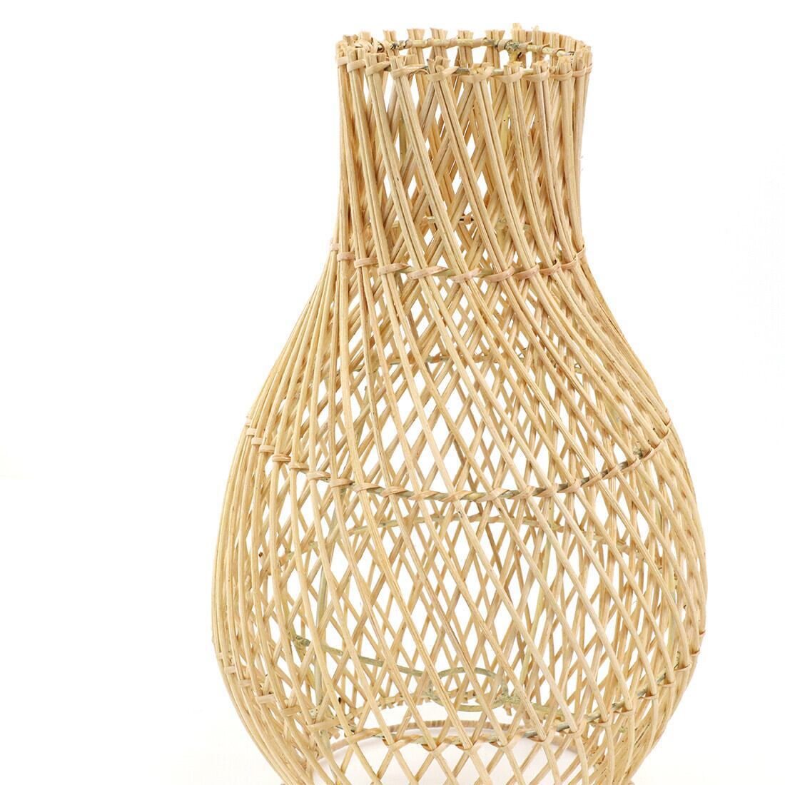 ラタンで編まれた雰囲気たっぷりのスタンドランプ。