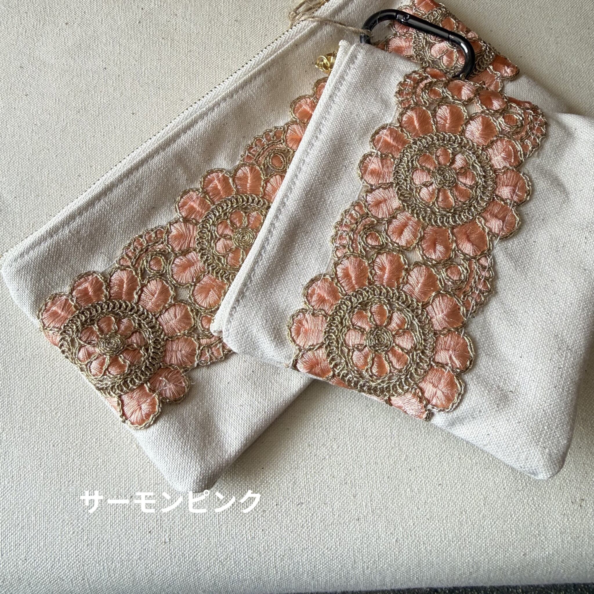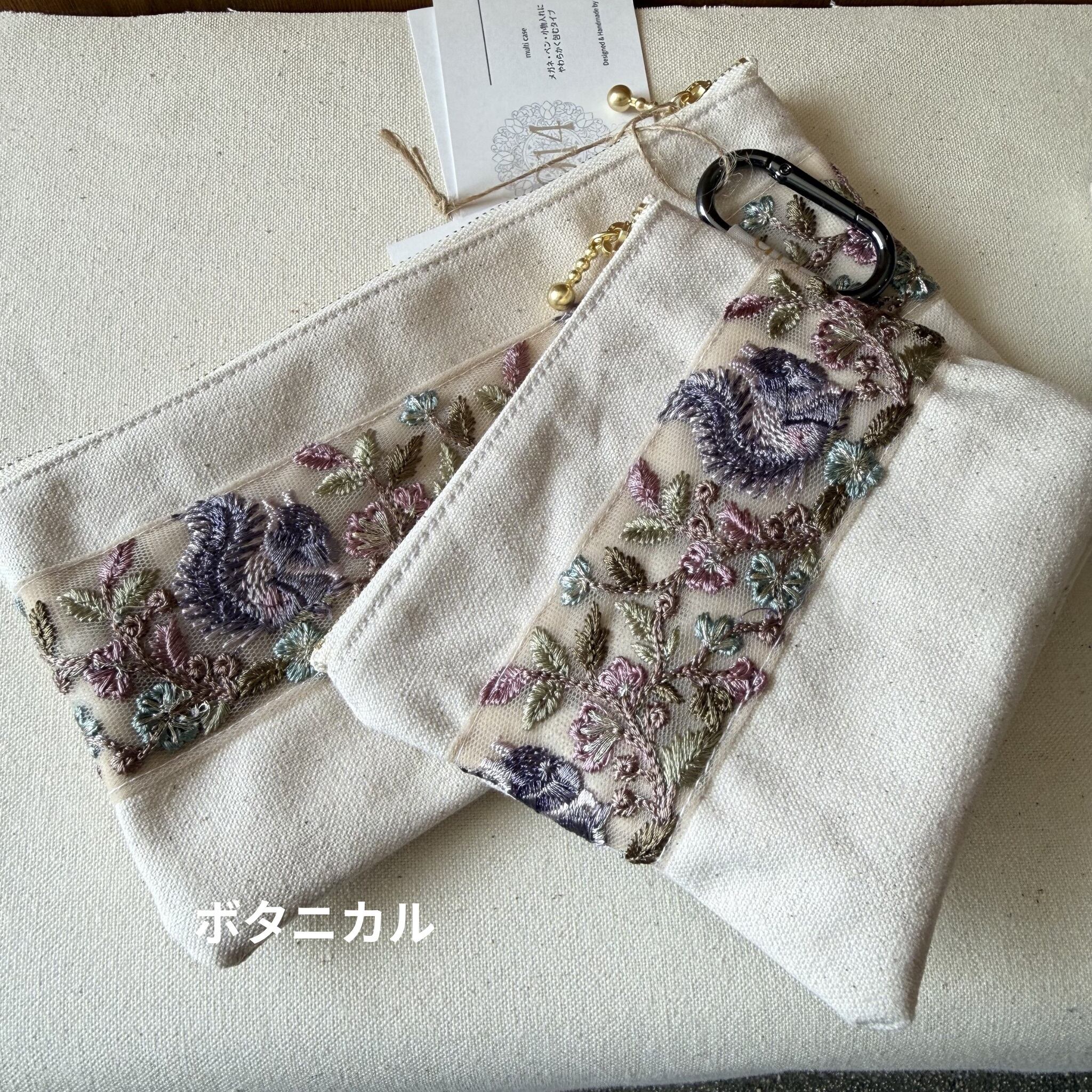 刺繍リボンのティッシュポーチ➕マルチポーチセット